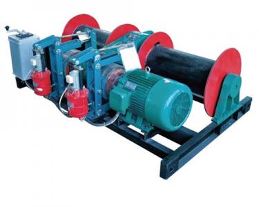 雙卷筒卷揚機是單電動機,單減速箱,雙卷筒同步輸出。雙卷筒卷揚機的零部件和其他種類的大致相同,也包括電動機、三角皮帶、傳動軸、齒輪、卷筒、鋼絲繩、定滑輪、動滑輪、起重機吊鉤、制動器、軸承。